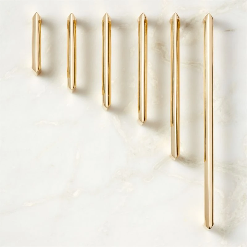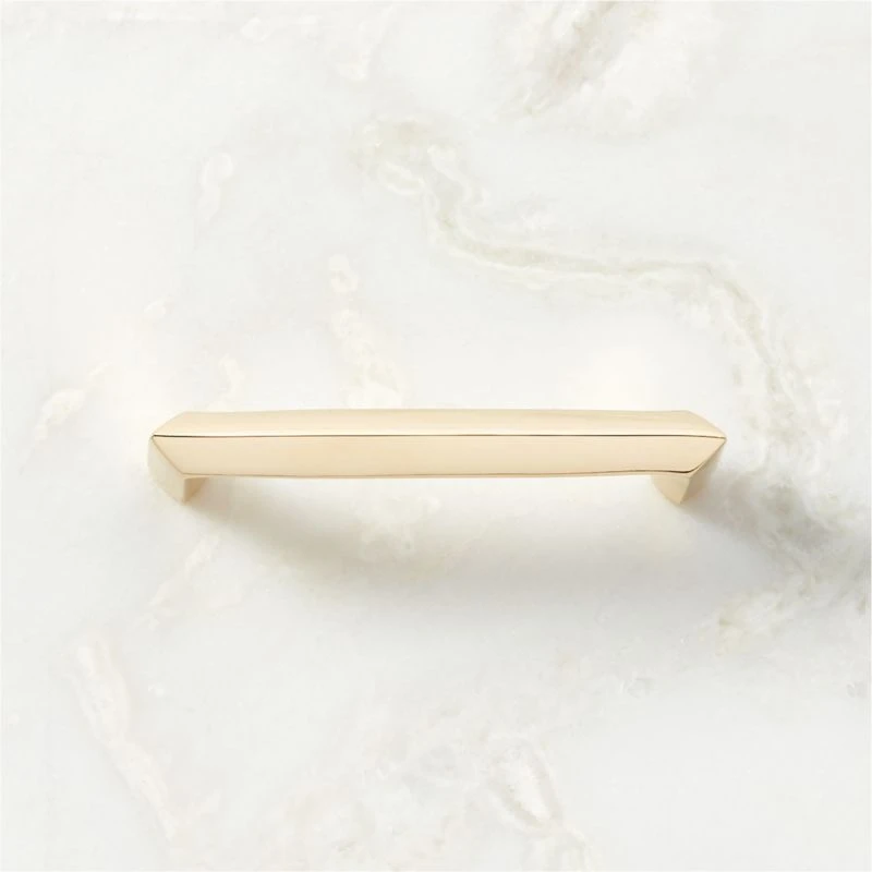 Designed by Barcelona-based Mermelada Estudio, these unique beveled handles bring sharp lines and a touch of modern luxury to any interior. Solid brass is unlacquered for a living finish that will patina beautifully over time. CB2 exclusive.
