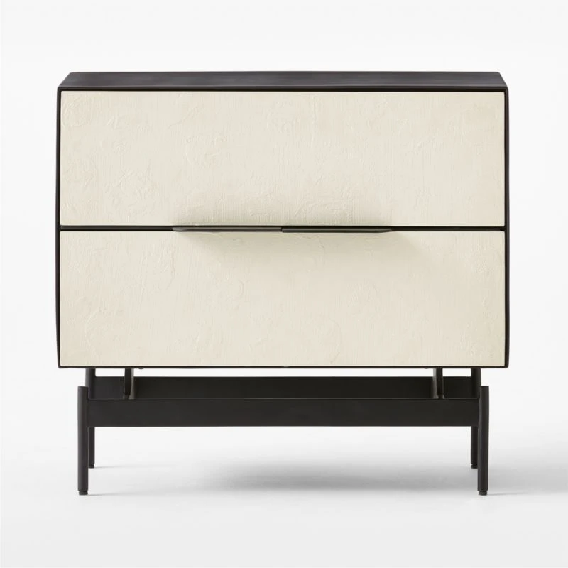 Avers 2-Drawer Plaster and Black Metal Nightstand 26″Wx15.5″Dx23.5″H