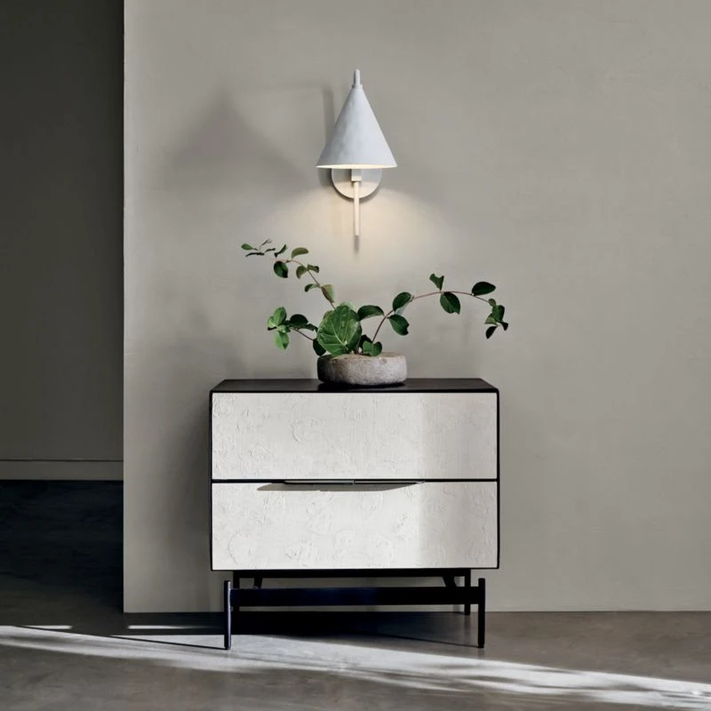 Designed by VUUE, blackened stainless steel holds two deep drawers finished in textured concrete. The simple, angular design is complemented by two flat stainless steel handles that disappear when viewed straight on. CB2 exclusive.