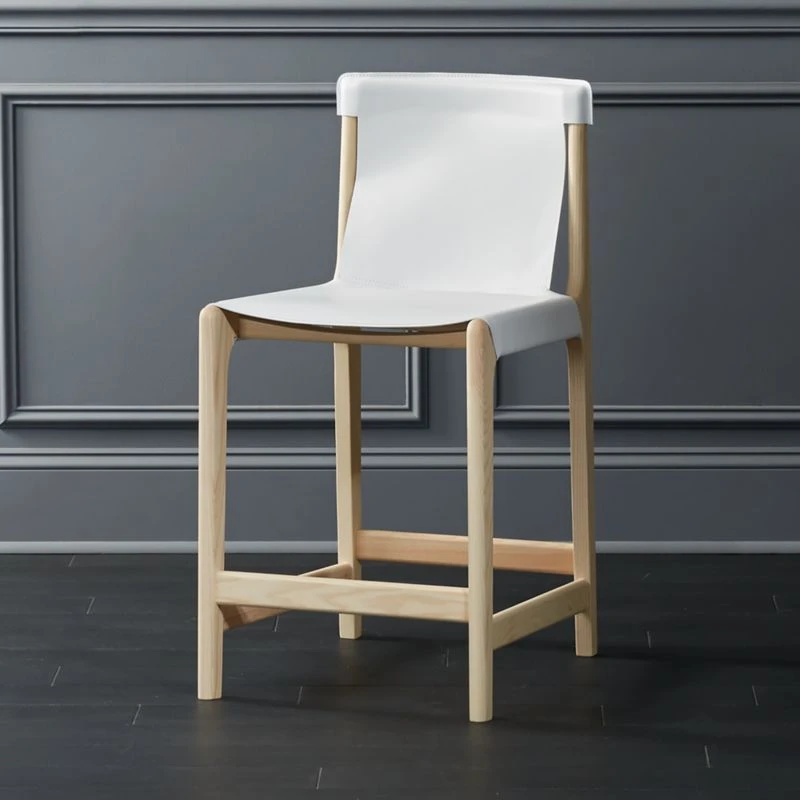 Made in Italy by a family-owned furniture company and designed by Balutto Associati, natural-finished ashwood bar stool invites guests to sit back and sip a while. 100% mid-grain white Italian leather stretches taut across the seat then slings loosely up and over the top to bring a laid-back attitude to the bar. Learn more about Balutto Associati on our blog. CB2 exclusive.