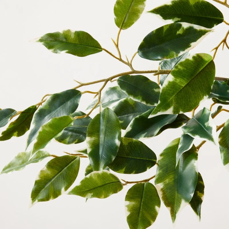Lifelike in scale with verdant, textured leaves, tall ficus tree is perfect for adding a bit of greenery and height to low-light spaces. Potted in a black plastic container, faux ficus tree is ready to drop into a planter of your choice. CB2 exclusive.