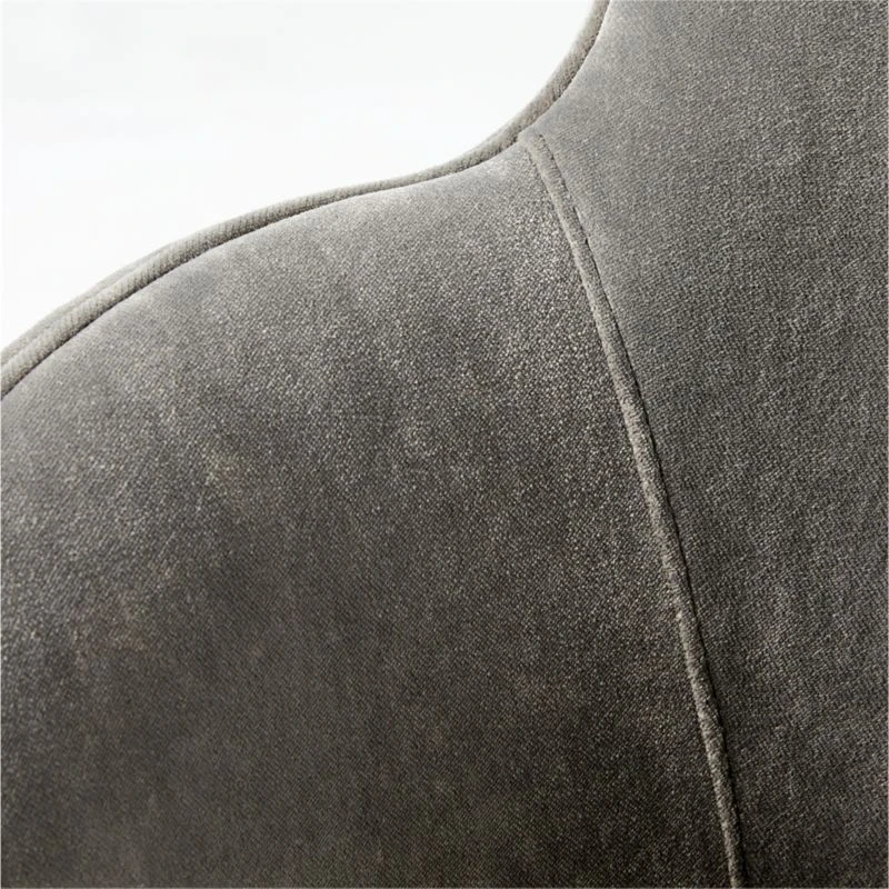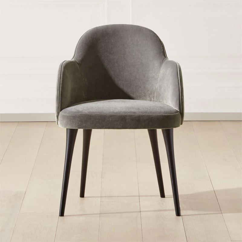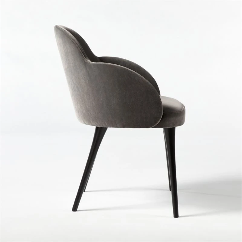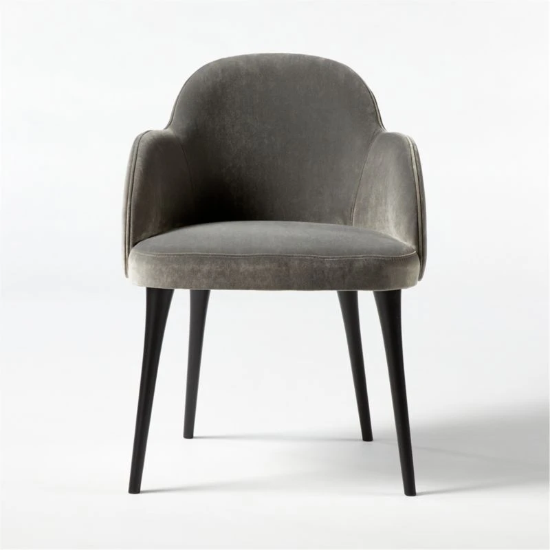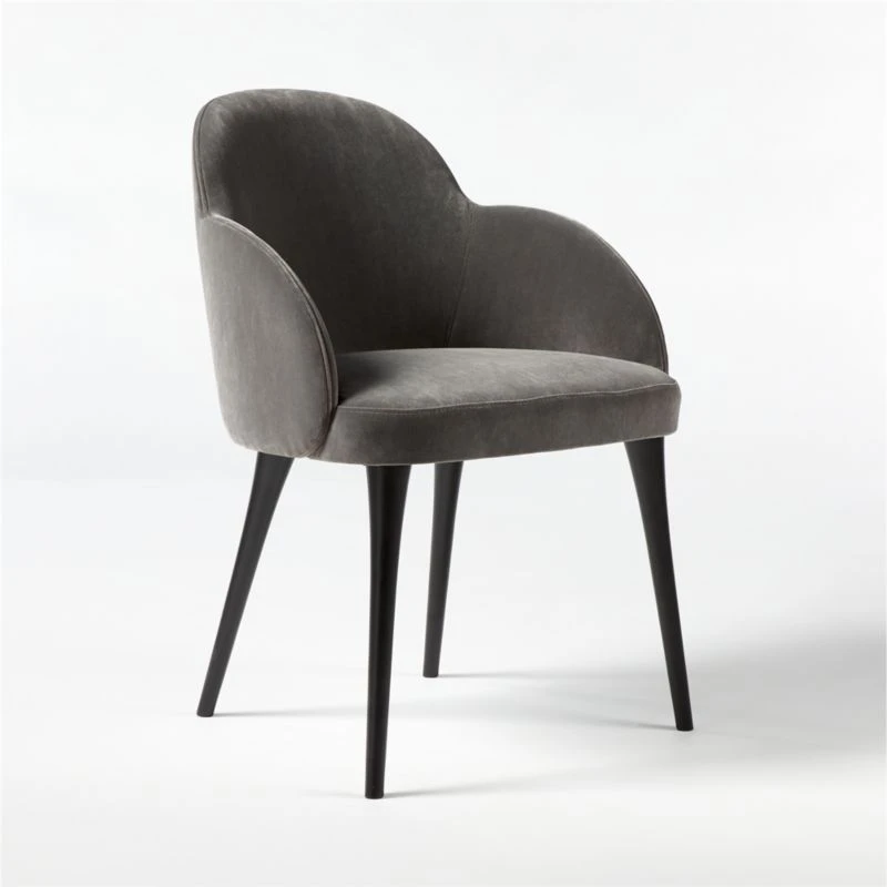 Made in Italy and designed for high-end comfort. Chair stands on four beechwood legs, each hand-carved and painted black. Luxe grey velvet wraps and curves around the ergonomic back, arms and seat for a sophisticated chair you can really sink into. Learn about Balutto Associati on our blog. CB2 exclusive.