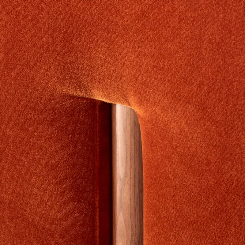 This sleek, low accent chair was originally created by iconic Italian designer Gianfranco Frattini for the fashionable Restaurant St. Andrews in the heart of old Milan. Now, a modern classic returns with the same spirit of the original design, reimagined in a rich, rust-colored velvet with room for four. Period-authentic details include hand-sewn button tufts on the interior sides and cushions, along with the inset walnut legs that are characteristic of the designer’s signature style. CB2 exclusive.