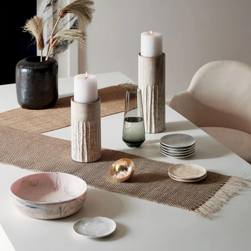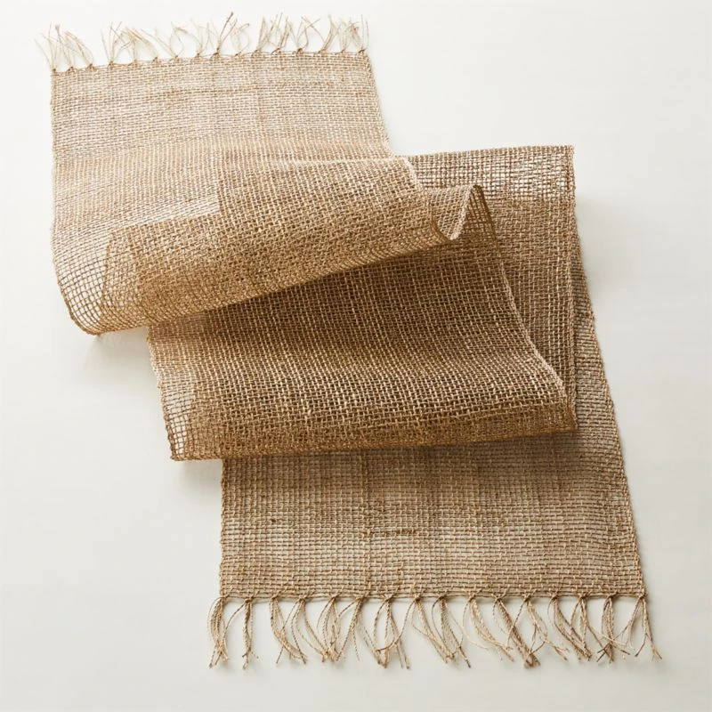 Reminiscent of a classic jute rug, this natural runner adds a layer of texture to your table. Unique open weave is a fresh touch, too. CB2 exclusive.