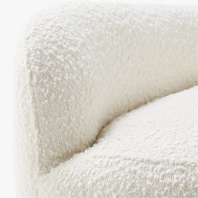 Upholstered bench offers a plush seat anyplace you put it: entry, bedroom or living room. Designed by Caleb Zipperer and covered in a rich ivory boucle-like fabric, versatile piece beautifully blurs the line between bench and sofa. Learn more about Caleb Zipperer on our blog. CB2 exclusive.