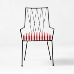 Pavilion Black Armless Outdoor Dining Chair With Striped Sunbrella ® Cushion Model 6150 Set Of 2
