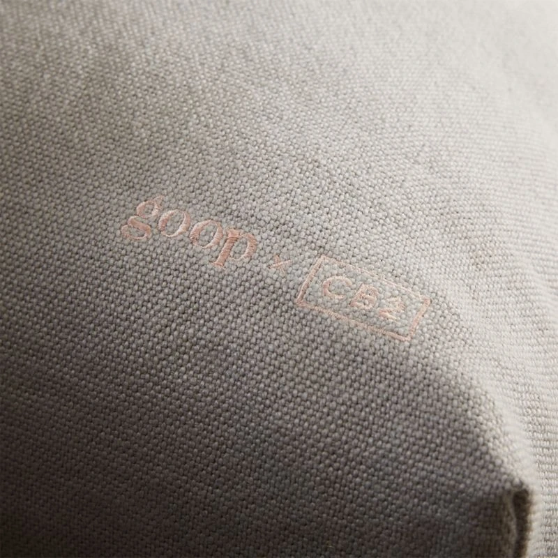 Oversize relax/chill/meditation pillow by goop features luxe linen cover and small handle for easy carrying. The large floor cushion is modeled after the Japanese “zabuton,” traditionally used in zen meditation practice. CB2 exclusive.