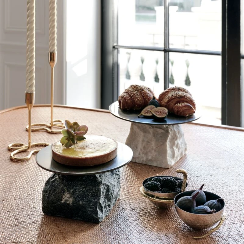 Solid brass snake is entwined around two stainless steel serving bowls for a bit of elevated edginess. Feels like the type of piece you’d find in the bars of your favorite boutique hotel or upscale bar, perfect for peanuts, olives or dips. CB2 exclusive.